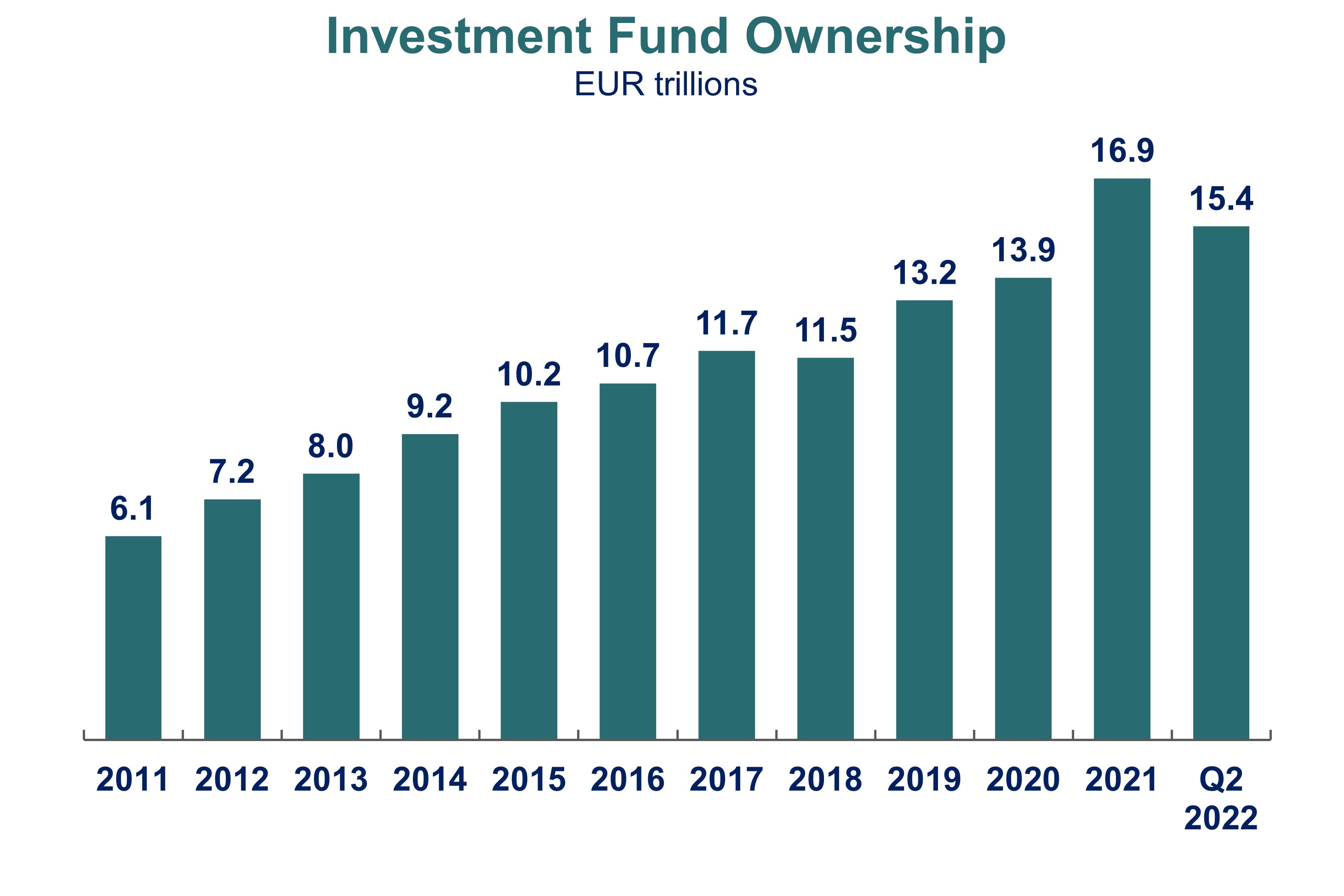 Total fund ownership in Europe amounted to EUR 18.6 trillion at the end of Q4 2024, compared to EUR 10.5 trillion in 2015.  These amounts refer to the funds that are bought and held by investors in Europe (EU 27 + UK), excluding funds domiciled in Europe but sold outside Europe.