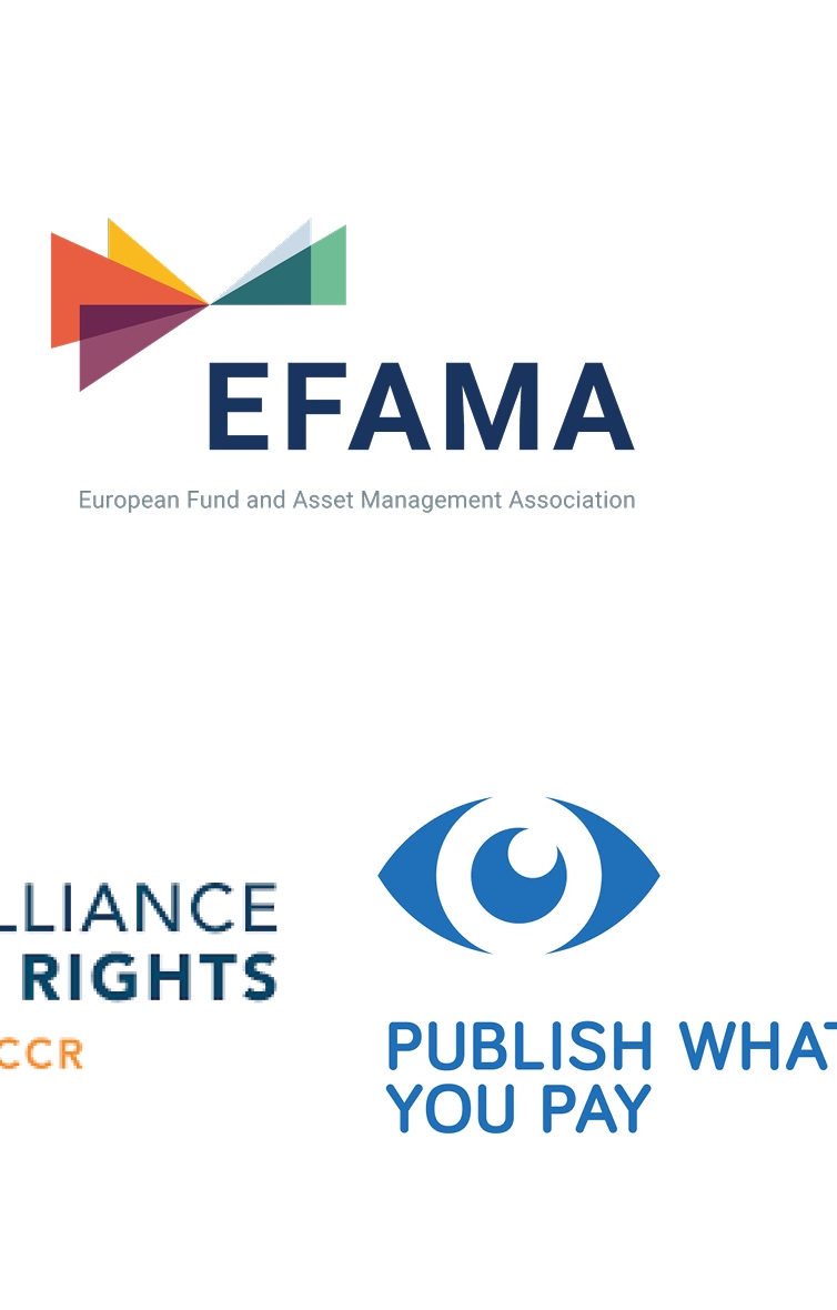 CDP, Economy for the Common Good, EFAMA, Eurosif, Frank Bold, Finance Watch, Global Witness, Investor Alliance for Human Rights, Publish What You Pay, ShareAction, Transport and Environment, WWF