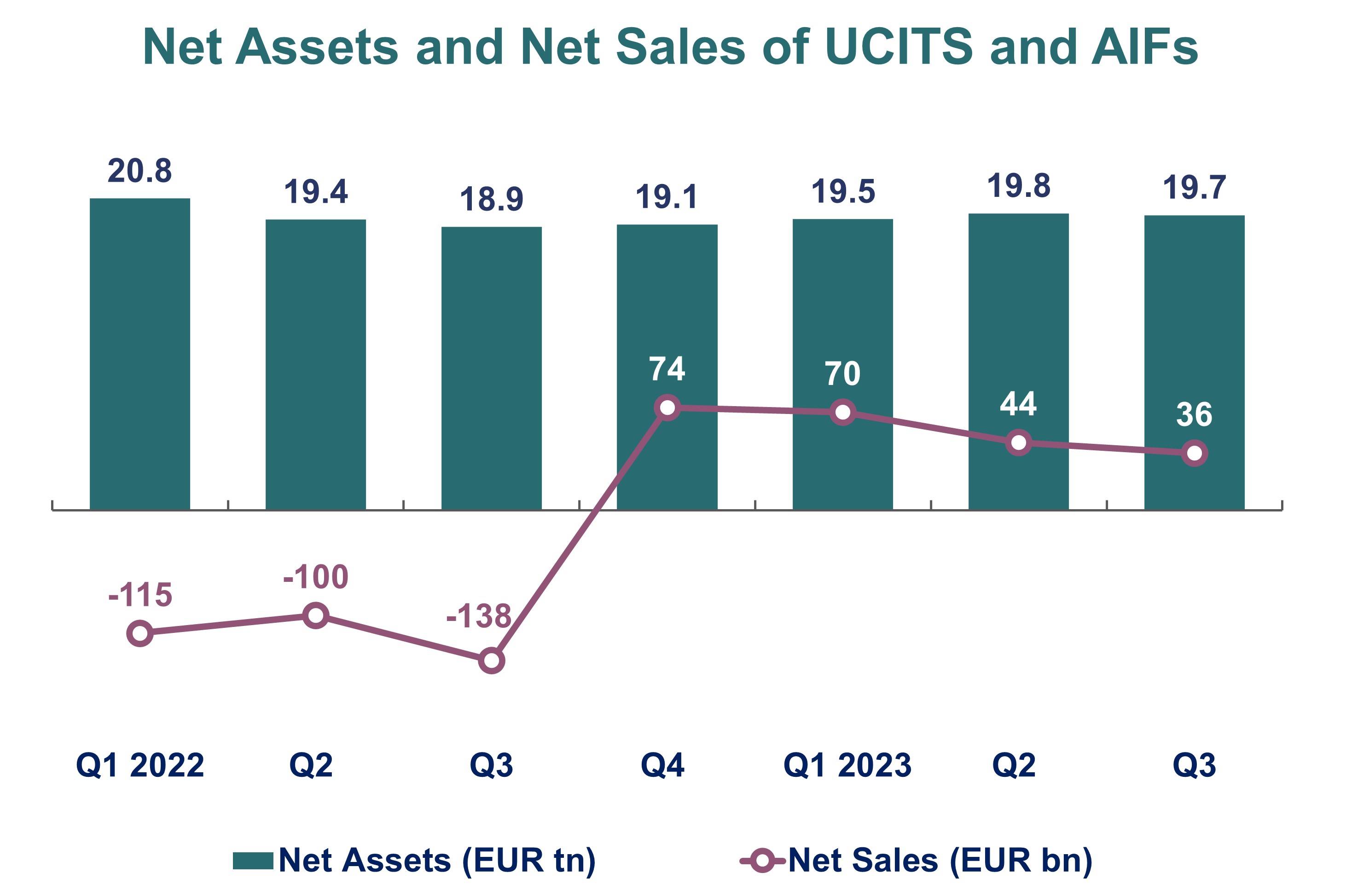 - Net assets of UCITS and AIFs decreased by 0.6% to EUR 19.7 trillion.