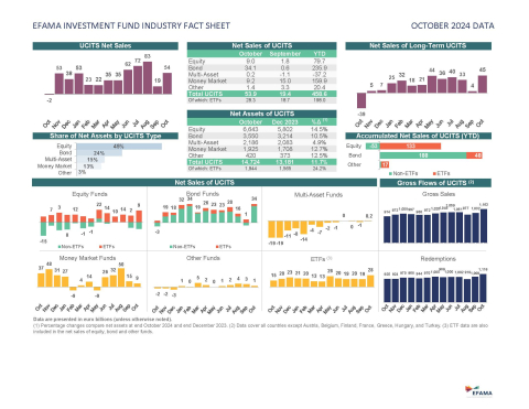 EFAMA has published its latest Monthly Statistical Release for October 2024.